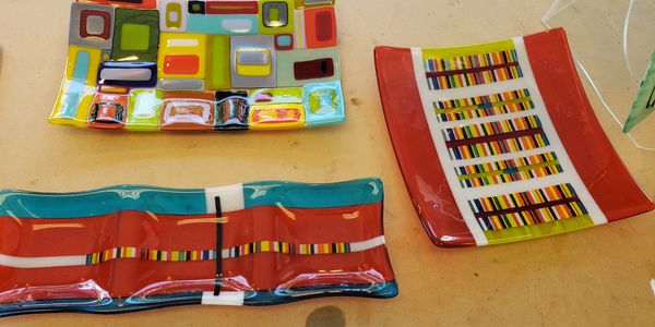 Learn fusing, slumping, designing with frit and stringers, lampworking and kiln carving. Find out about compatible glass, iridized glass, dichroic glass, stringers, noodles, confetti & fiber paper. We will show you how to drill a hole with a grinder, bend glass over propane torch and how to carve a design with fiber paper.